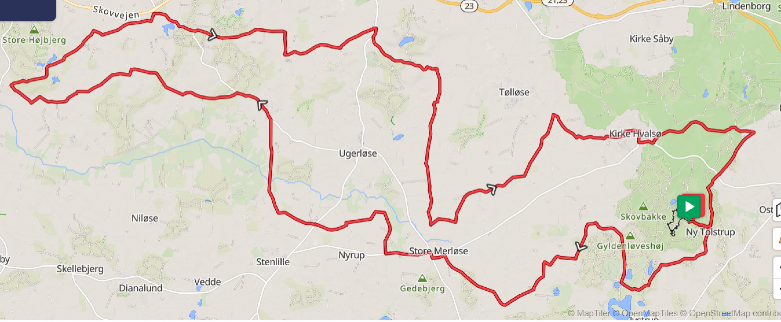 Racer : Kører nedennævnte rute på ca. 110 km. Som er ca. 80 % af ruten fra skjoldnæsholm løbet